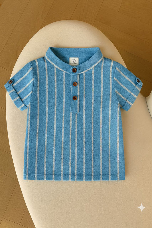 Chic & Comfortable Blue & White Sugar Cane Unisex Co-ord Top & Bottom Set for Kids