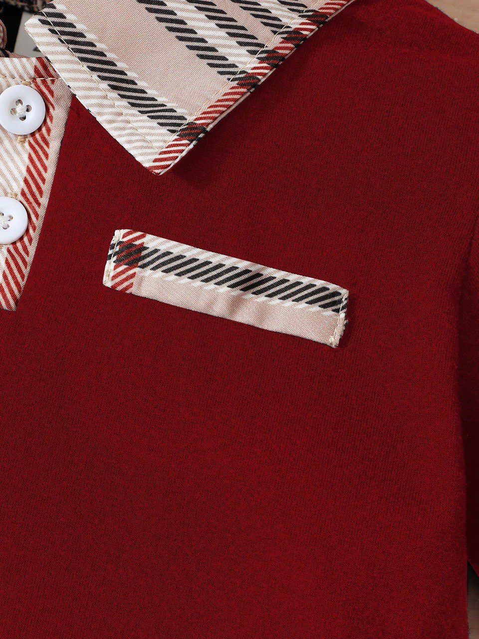 - Solid Polo Shirt with Chex Printed Collar, Placket & Pocket Detail