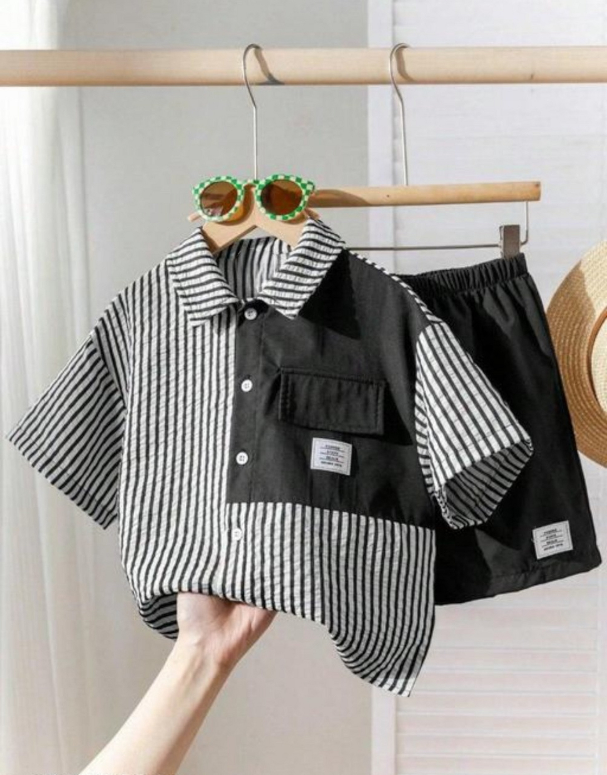 - Stylish Two-Tone Shirt with Matching Solid Shorts